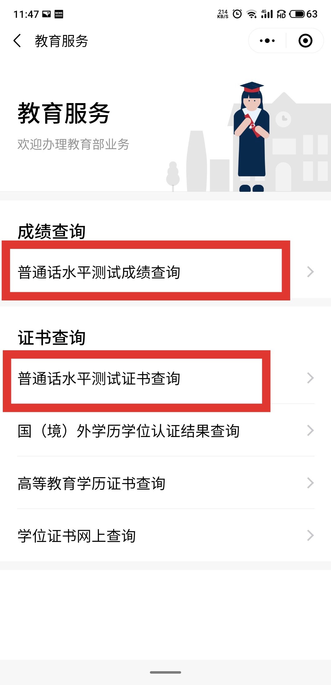 第二步:點擊『普通話水平測試成績查詢』