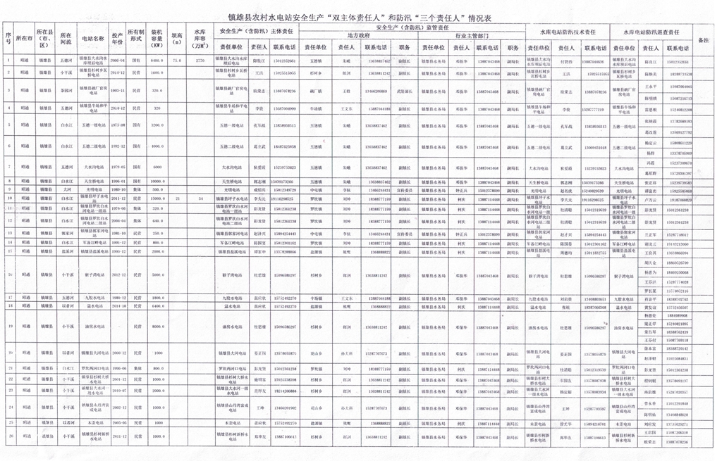 鎮(zhèn)雄縣水電站“雙主體責(zé)任人”、防汛“三個(gè)責(zé)任人”情況公示