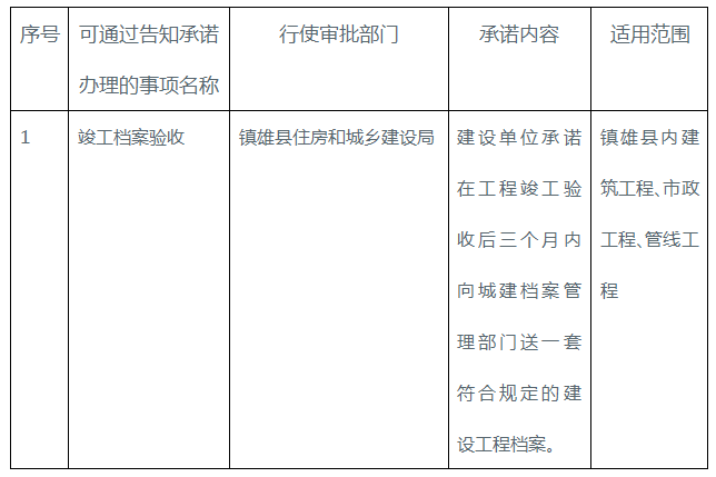 鎮(zhèn)雄縣住房和城鄉(xiāng)建設局關于竣工檔案驗收告知承諾審批事項的公告
