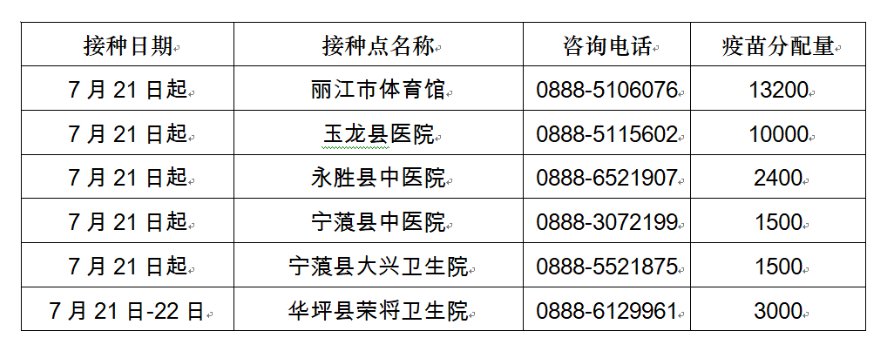 麗江未成年人新冠疫苗接種公告(年齡+時間+接種點)