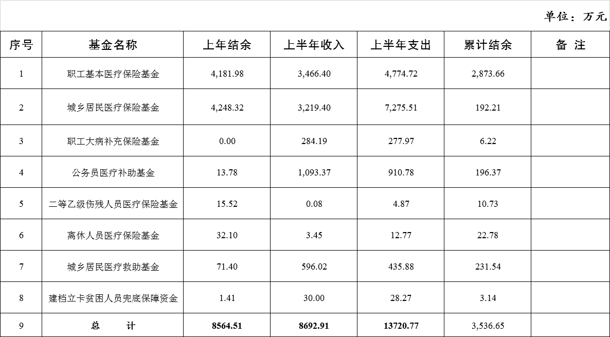 大理市永平縣醫(yī)療保險(xiǎn)服務(wù)中心2021年上半年各項(xiàng)基金收支結(jié)余情況公開
