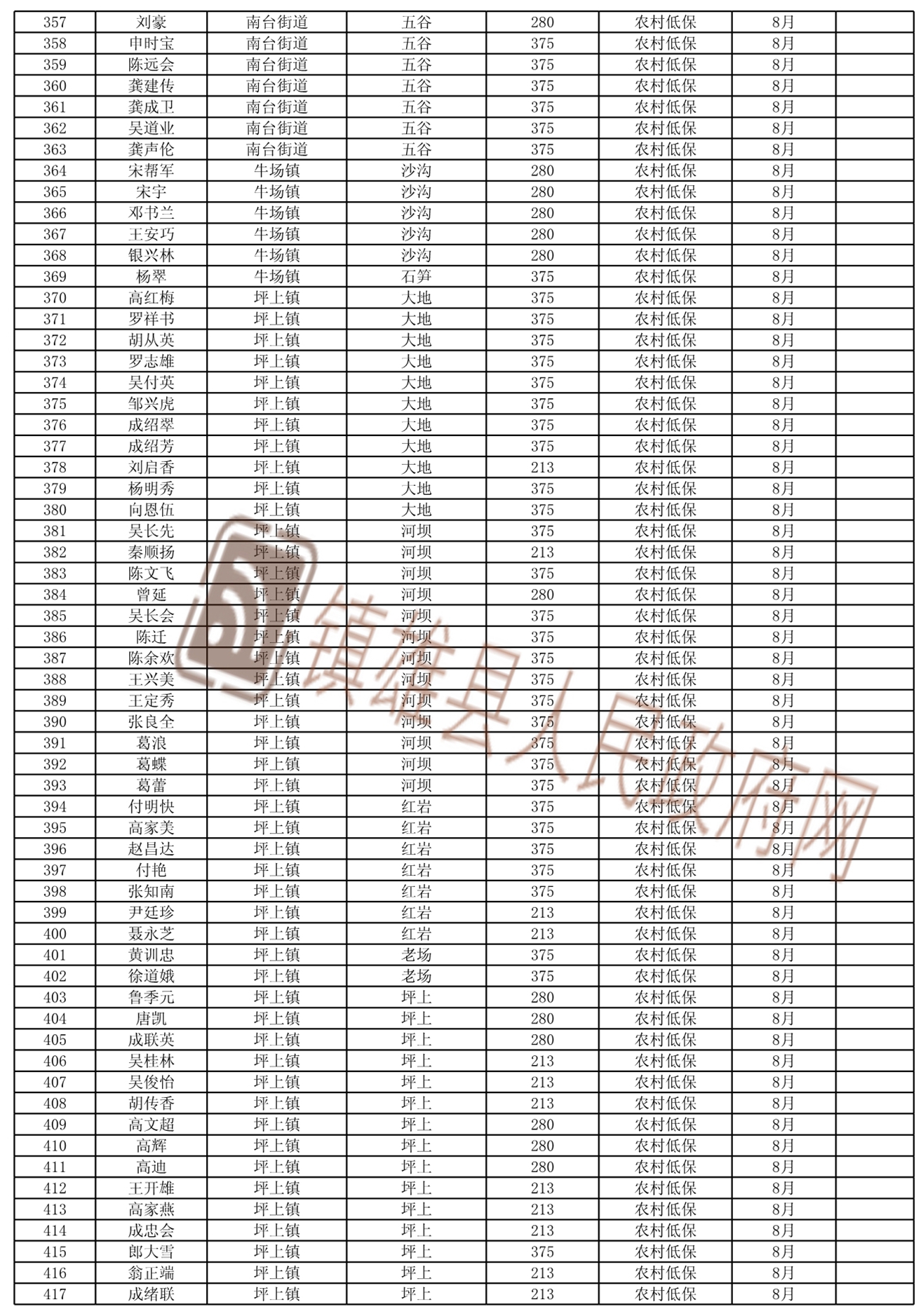根據(jù)《鎮(zhèn)雄縣陽光低保專項行動實施方案》,我縣城鄉(xiāng)低保及特困人員救助金發(fā)放按動態(tài)管理后的名單執(zhí)行,F(xiàn)將2021年8月新增城鄉(xiāng)低保的名單及特困人員名單予以長期公示,今后根據(jù)動態(tài)情況適時更新。公示期間,如對城鄉(xiāng)低保人員及特困人員有異議的,請向有關(guān)單位舉報。