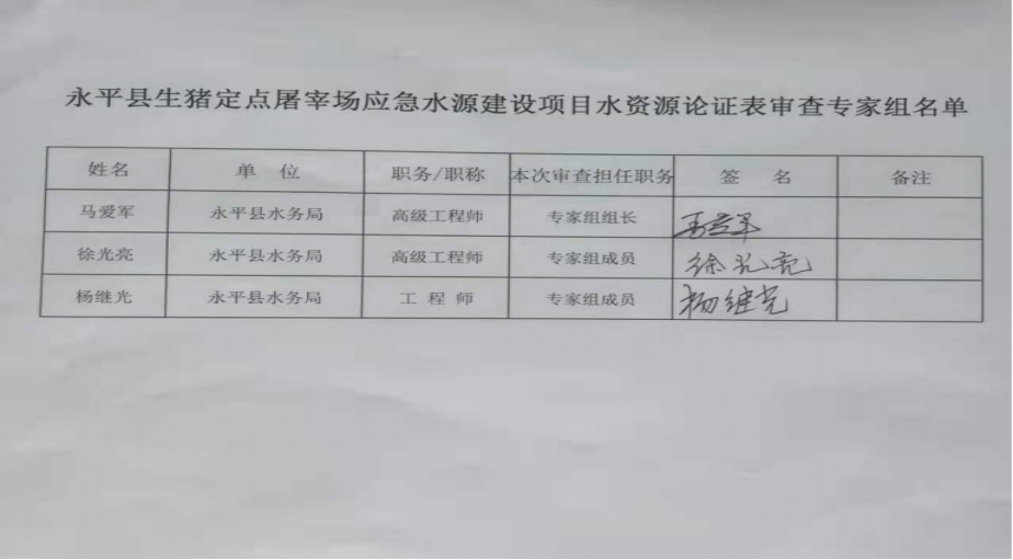 附件:《永平縣生豬定點屠宰場應(yīng)急水源建設(shè)項目水資源論證報告表審查意見》