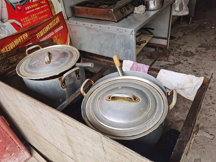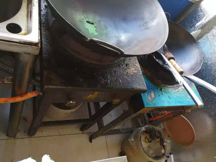 2.清洗區(qū)域臟、亂、差,有青苔;沒(méi)有設(shè)置清洗池,用過(guò)的餐具沒(méi)有及時(shí)清洗,亂擺亂放;泔水桶、垃圾桶、煤灶隨意擺放。