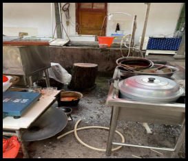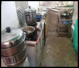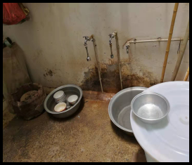 4、餐飲具清潔區(qū)及食物粗加工區(qū)域環(huán)境衛(wèi)生差,餐廚用具清洗不及時,泔水桶未帶蓋。