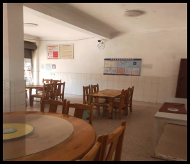 2、就餐桌面、桌椅、墻面、地面清潔,門窗潔凈明亮,就餐場所整潔;