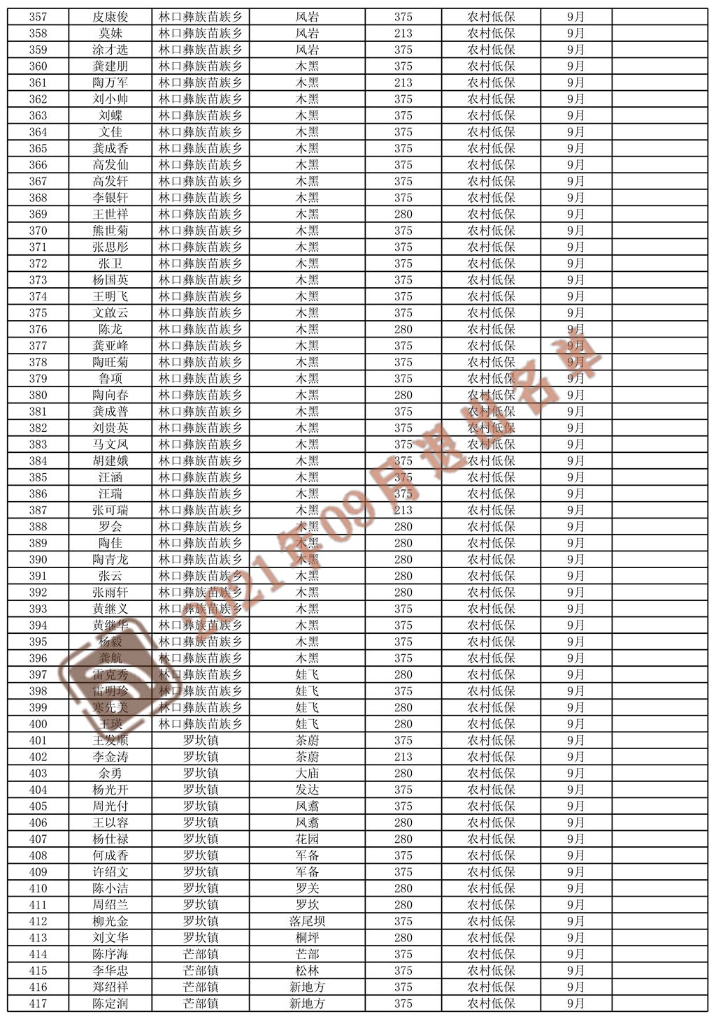 2021年9月份退出城鄉(xiāng)低保和特困人員名單
