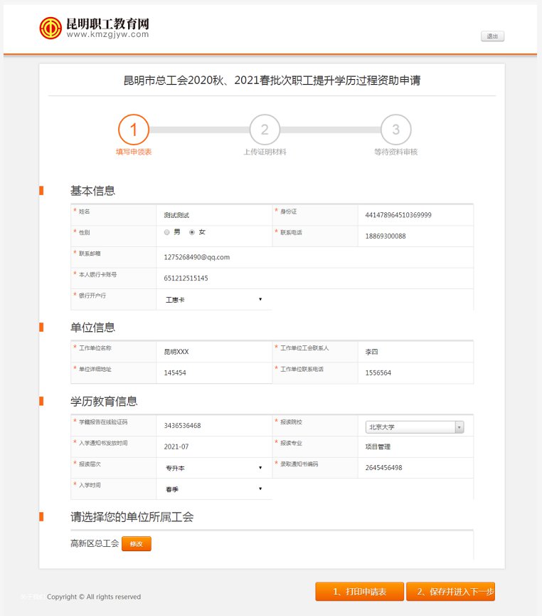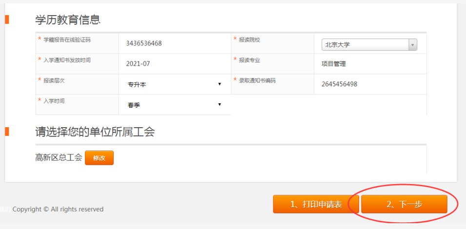 需要填寫的內(nèi)容:1、基本信息,2、單位信息,3、學歷信息;注意:再次確認單位工會所屬的區(qū)總工會,產(chǎn)業(yè)、直屬單位工會信息,如有錯誤及時進行修改。