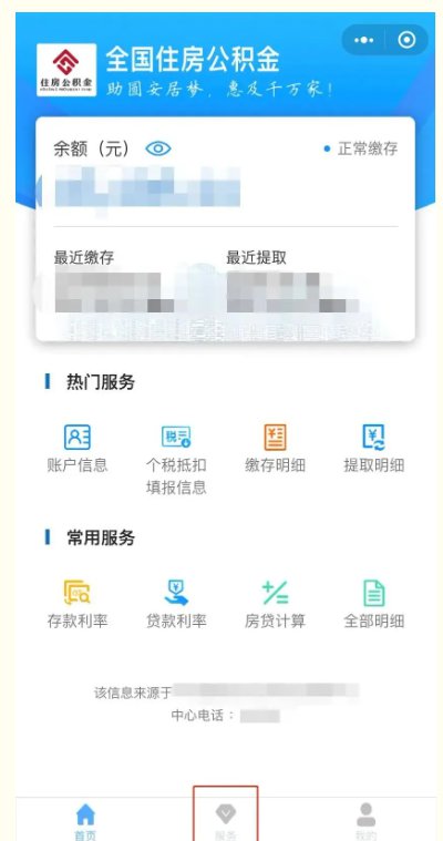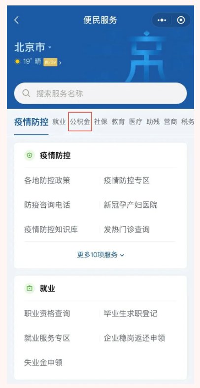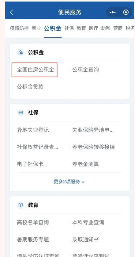 點(diǎn)擊“公積金”→“全國住房公積金”;