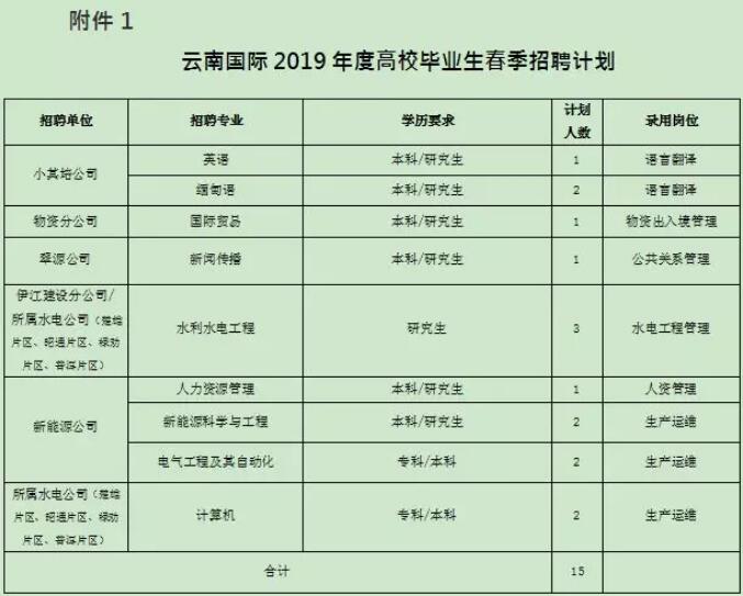 招聘專業(yè)見云南國際2019年度高校畢業(yè)生春季招聘計(jì)劃(附件1)。