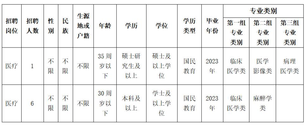 高等院校醫(yī)學(xué)類本科及以上學(xué)歷畢業(yè)后直接參加國(guó)家計(jì)劃內(nèi)住院醫(yī)師規(guī)范化培訓(xùn),2023年國(guó)家住院醫(yī)師規(guī)范化培訓(xùn)合格且具有國(guó)家執(zhí)業(yè)醫(yī)師資格,參加醫(yī)療衛(wèi)生行業(yè)招聘醫(yī)學(xué)類崗位的,視為2023年度應(yīng)屆畢業(yè)生(資格復(fù)審時(shí)須提供成績(jī)單、合格證明,否則取消聘用資格)。