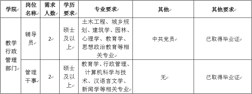 根據(jù)學(xué)院工作需要,現(xiàn)面向社會補充招聘教師及管理干事,具體要求如下:
