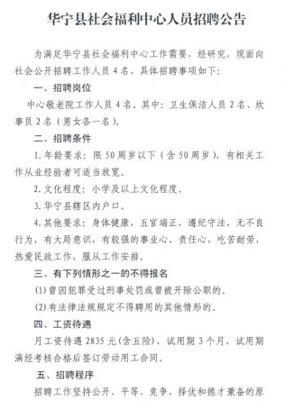 玉溪市華寧縣社會(huì)福利中心人員招聘公告